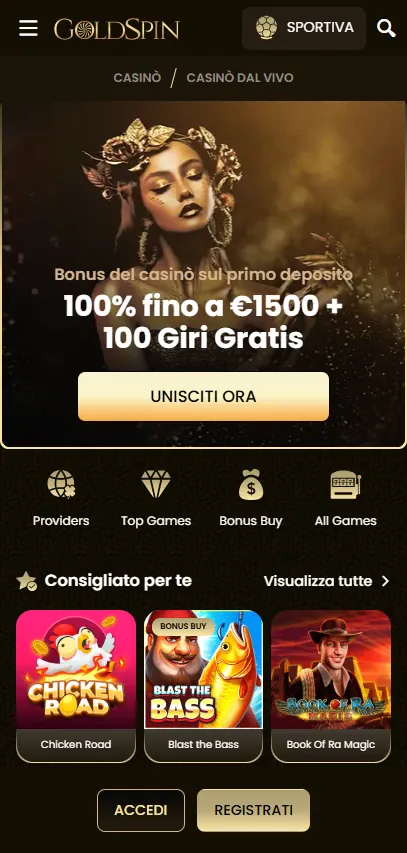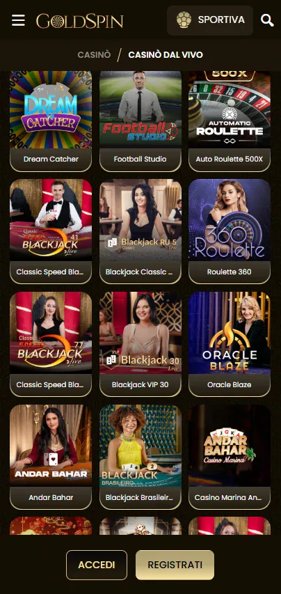 Abbiamo costruito la nostra piattaforma mobile per sembrare un casinò completo, non una versione limitata. Quando usi Goldspin Casino su telefono, hai accesso a una vasta libreria di oltre 8.000 titoli, inclusi slot, giochi da tavolo, giochi con croupier dal vivo, crash game e scelte in stile arcade. Molti giocatori scelgono casino Goldspin Italia perché pagamenti e strumenti dell’account funzionano allo stesso modo su mobile e desktop. Se giochi già da desktop, Goldspin mantiene sincronizzati automaticamente portafoglio, bonus e cronologia di gioco.