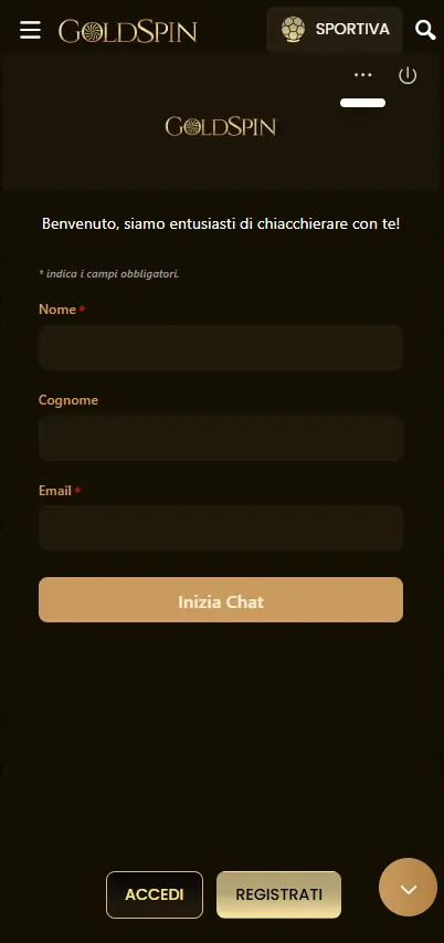 Le azioni dell’account sono progettate per essere brevi e chiare su schermi piccoli. Usa i tuoi dati di login Goldspin per entrare nella cassa, riscattare offerte e controllare i prelievi in sospeso. Per un nuovo account, la registrazione Goldspin è disponibile direttamente da mobile, con un modulo breve e passaggi base di verifica. Se passi da telefono a desktop, saldo e avanzamento bonus si sincronizzano automaticamente, quindi non devi ripetere le azioni.